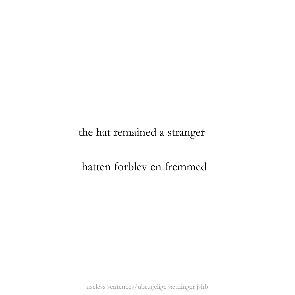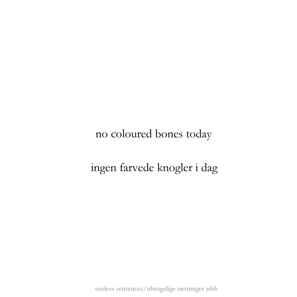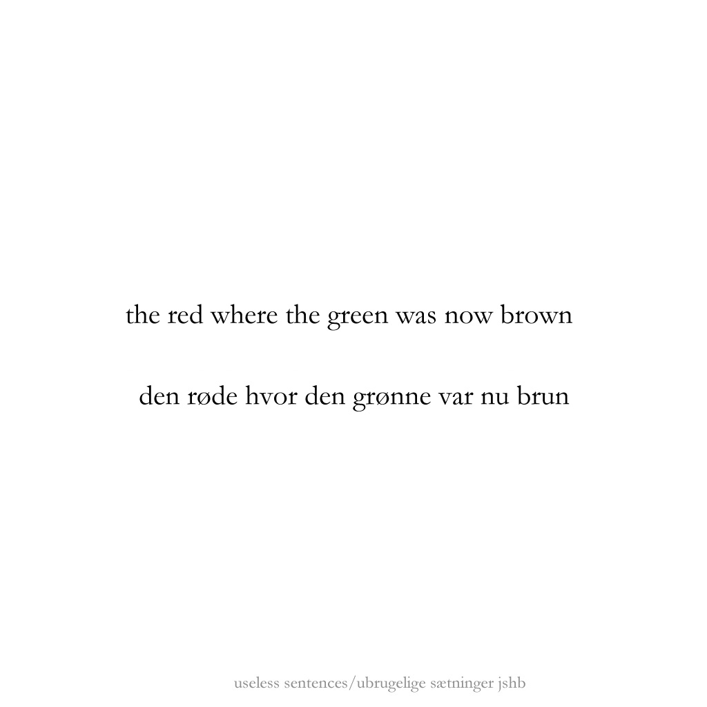 As a continuation of exploring counter-point/juxtapostion in poetry to create a kind of dialogue in the reader’s mind, these are experiments to find out whether a title – or what presents itself as a title typographically – could function as a first line in a poem. Normally we read the title as a more or less comprehensive catch-phrase of what the text below it will reveal, but in this case the following phrase/poem will be in juxtaposition to what the title proposes. The basic presumption is that “the space” between the two parts creates a room for the reader to enter. I hope it works.