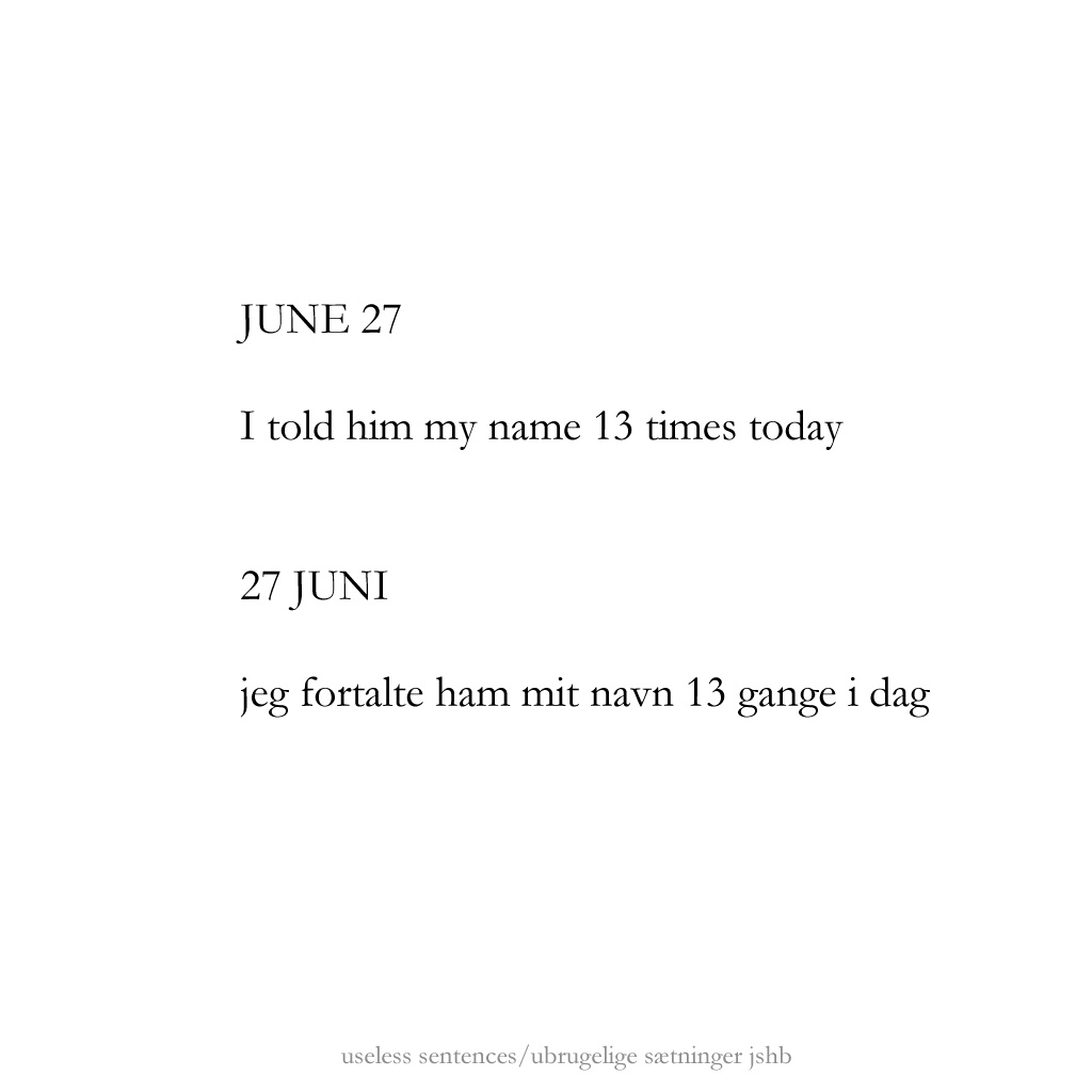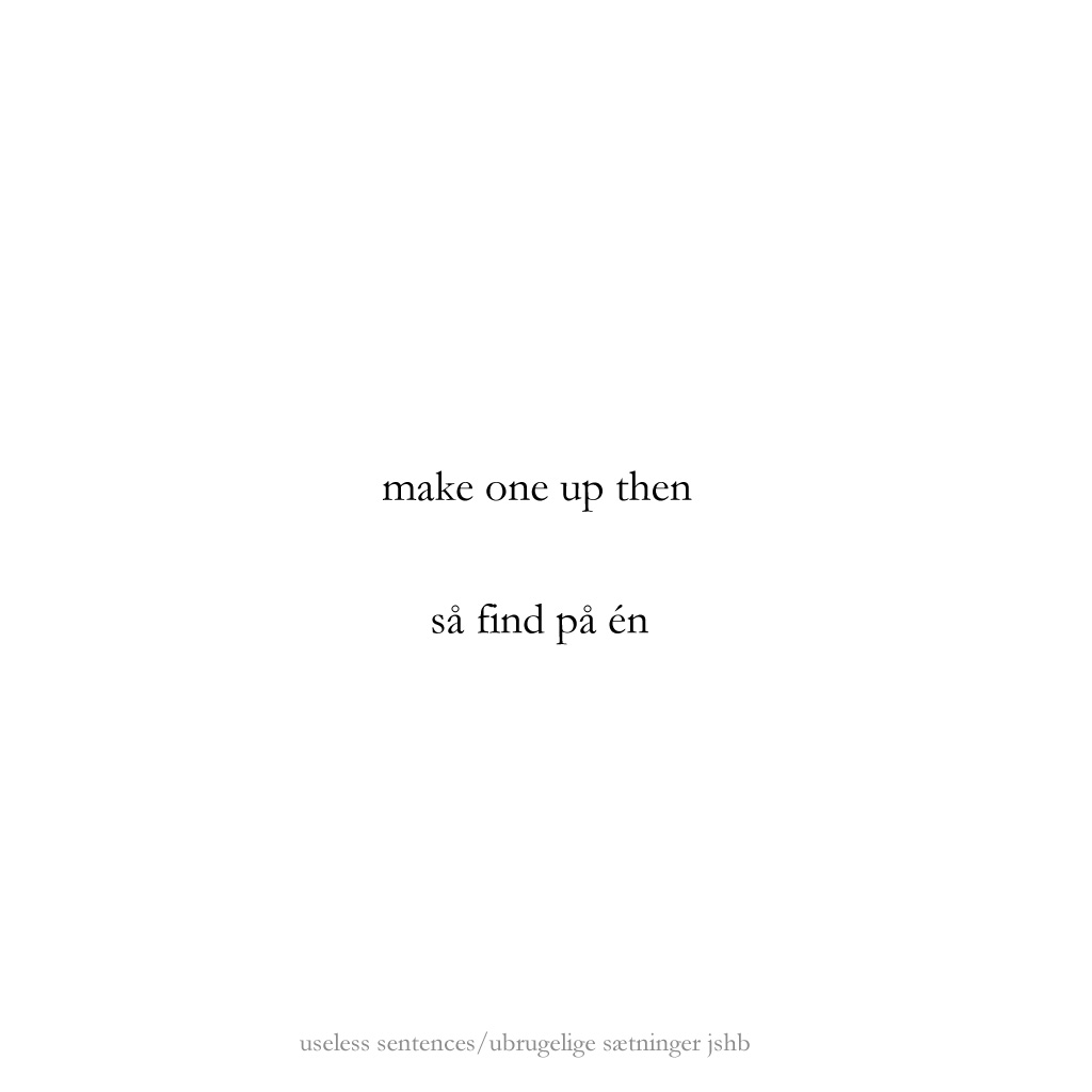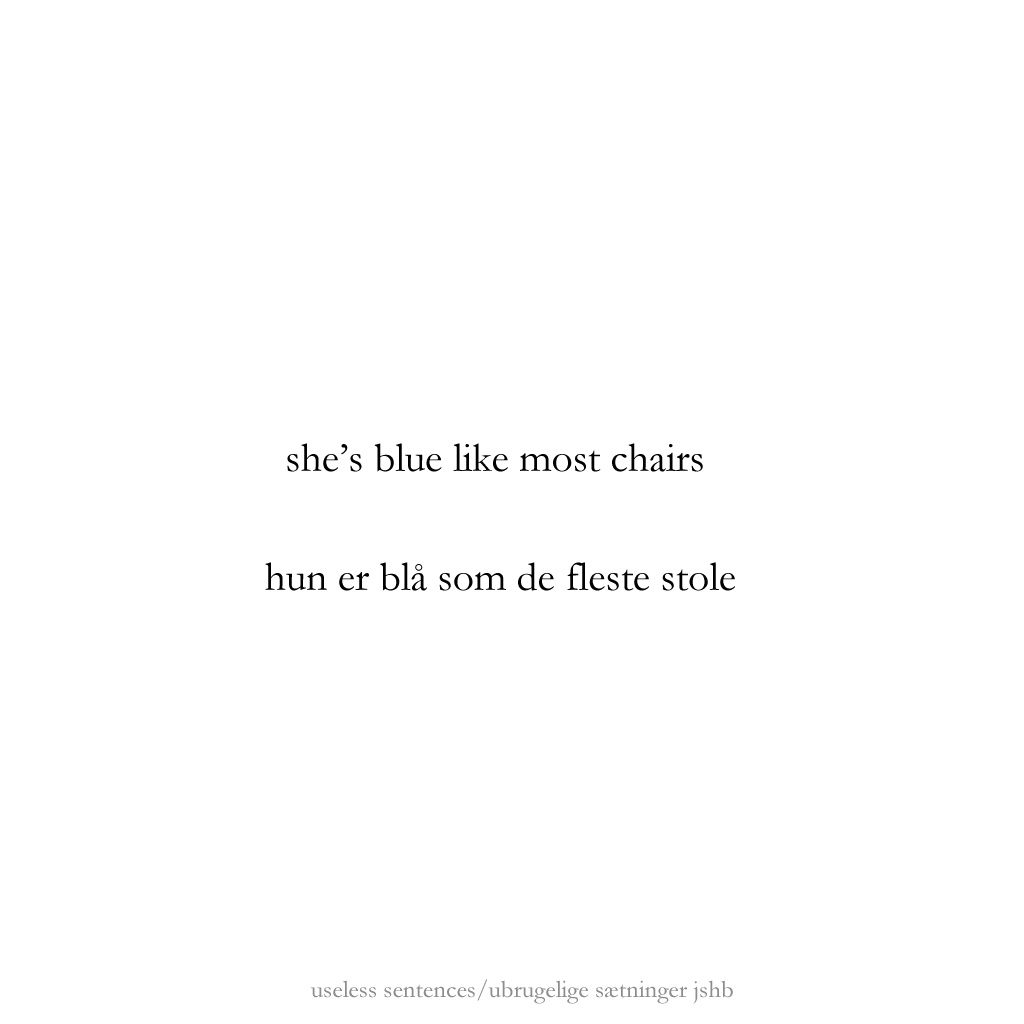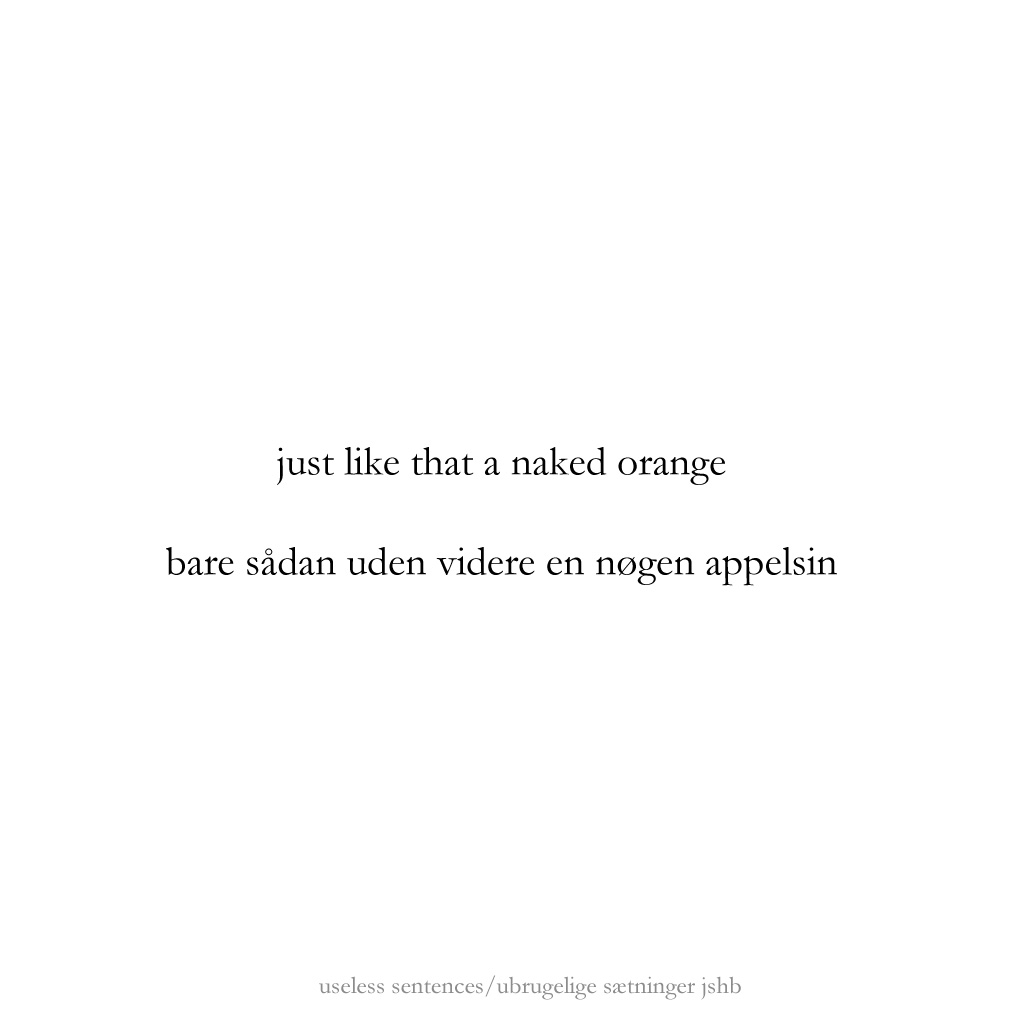 As a continuation of exploring counter-point/juxtapostion in poetry to create a kind of dialogue in the reader’s mind, these are experiments to find out whether a title – or what presents itself as a title typographically – could function as a first line in a poem. Normally we read the title as a more or less comprehensive catch-phrase of what the text below it will reveal, but in this case the following phrase/poem will be in juxtaposition to what the title proposes. The basic presumption is that “the space” between the two parts creates a room for the reader to enter. I hope it works.